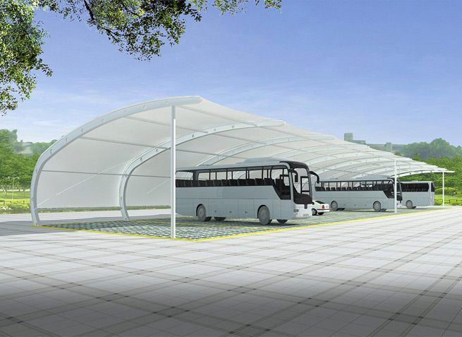 湖北长江楚韵吊塔式异型钢膜结构车棚,本项目采...
