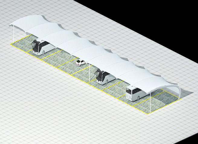 恒天嘉华张拉式冒顶膜结构自行车车棚,本顶目为冒...